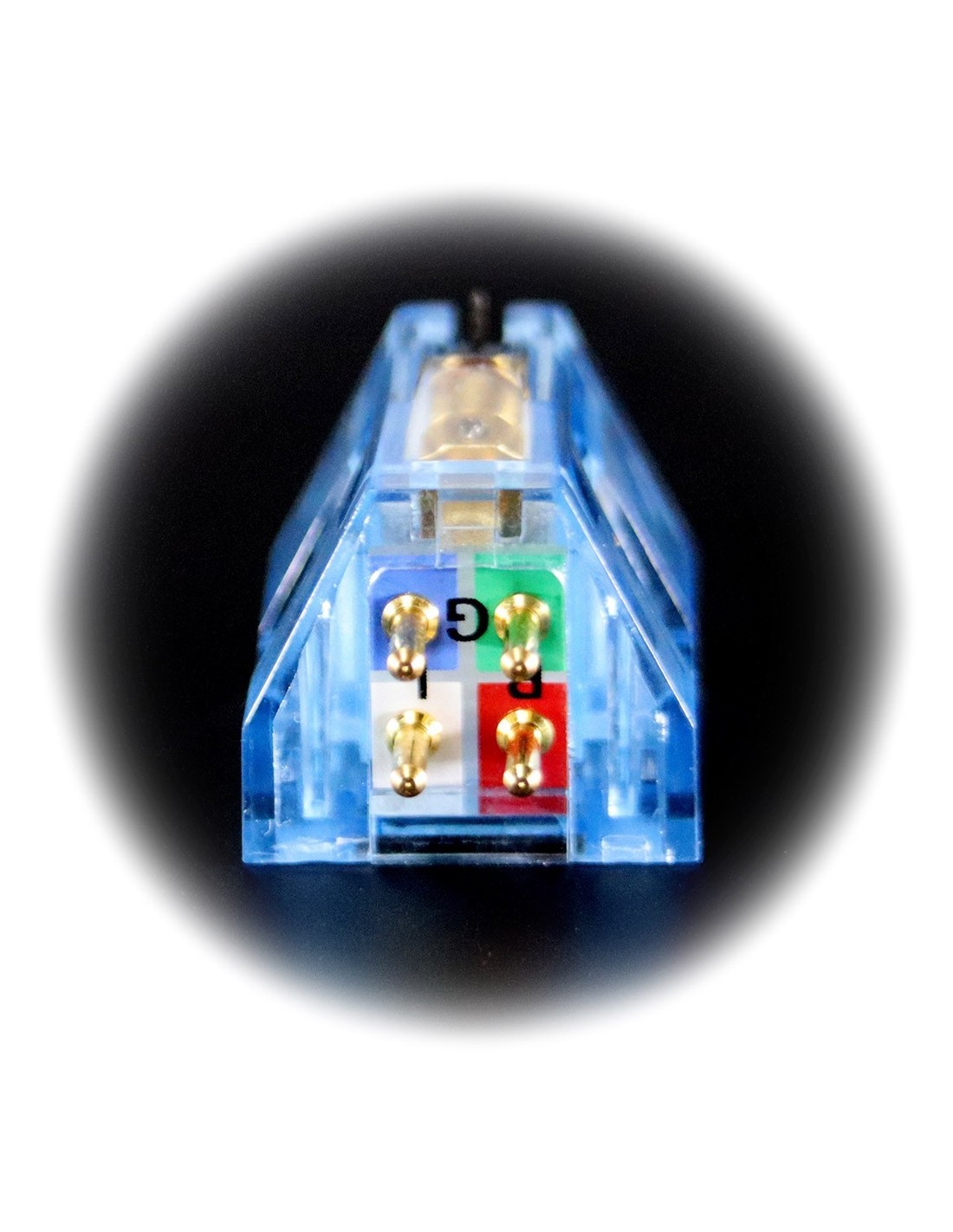 Fonorivelatore a bobina mobile MC con tecnologia Real Stereo Generator System - avvolgimenti in purissimo rame 6N OFC Crystal Copper - cantilever in alluminio - stilo con taglio Line-contact - piastra terminali in vetroresina epossidica e pin d'uscita placcati in oro - trattamento criogenico a -196 gradi C - tensione d'uscita 0,48 mV - impedenza interna 8 Ohm - impedenza di carico > 100 Ohm - peso di lettura da 1,7 a 2,5 gr (raccomandato 2,0 gr) - cedevolezza orizzontale 15x10 - 6 cm / dyne - cedevolezza verticale 12x10 - 6 cm / dyne - bilanciamento dei canali inferiore a 0,5 dB - dimensioni (L x A x P) 16,2 x 17,6 x 19,7 mm - peso 5 gr