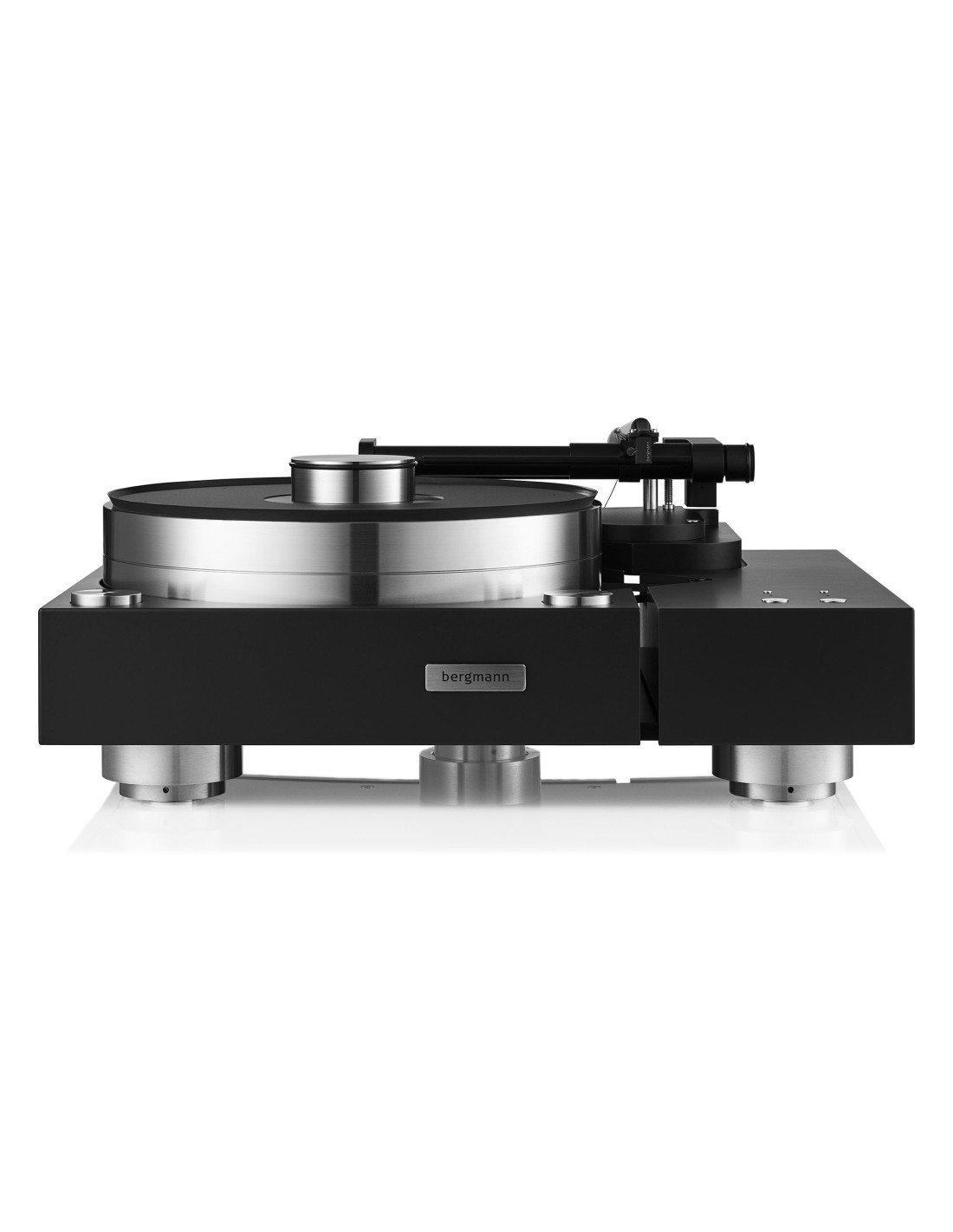Versione speciale del giradischi Bergmann Galder modificato, con piatto da 35 kg in acciaio inox, parte della componentistica in acciaio inox, nuovi piedini isolanti, diversi miglioramenti su basetta e braccio Bergmann Odin modificato incluso, pompa compressore più potente. Finitura nero opaco come versione Gold.