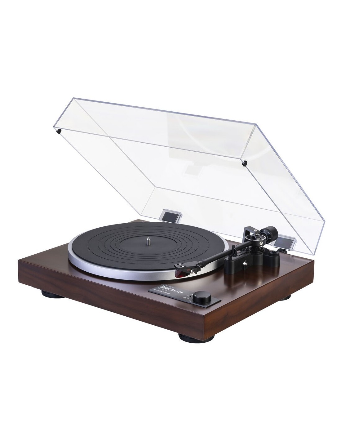 Giradischi con trazione a cinghia con plinto in MDF - Velocità 33/45/78 giri - Braccio dritto in alluminio con sistema a doppio snodo su cuscinetti - Antiskating regolabile a molla - Piatto in alluminio pressofuso - Coperchio antipolvere in acrilico incluso - Testina MM Ortofon 2M Red in dotazione - Dimensioni (con coperchio chiuso): L435 x A145 x P367mm - Peso: 5.9kg