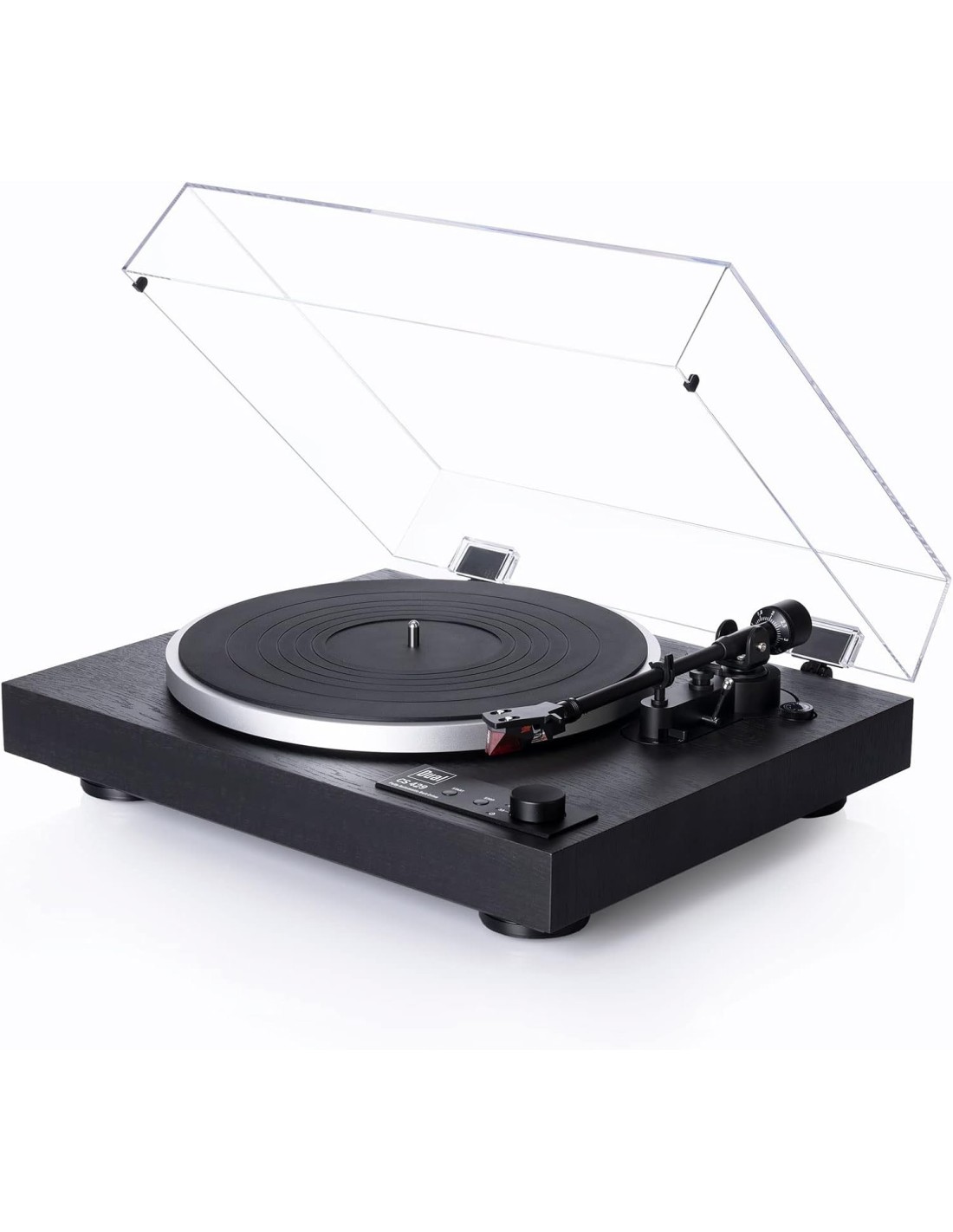 Giradischi con funzionamento totalmente automatico e trazione a cinghia con plinto in MDF - Velocità 33/45/78 giri - Braccio dritto in alluminio - Antiskating regolabile a molla - Piatto in alluminio pressofuso - Coperchio antipolvere in acrilico incluso - Testina MM Ortofon 2M Red in dotazione - Dimensioni (con coperchio chiuso): L435 x A145 x P367mm - Peso: 6.2kg