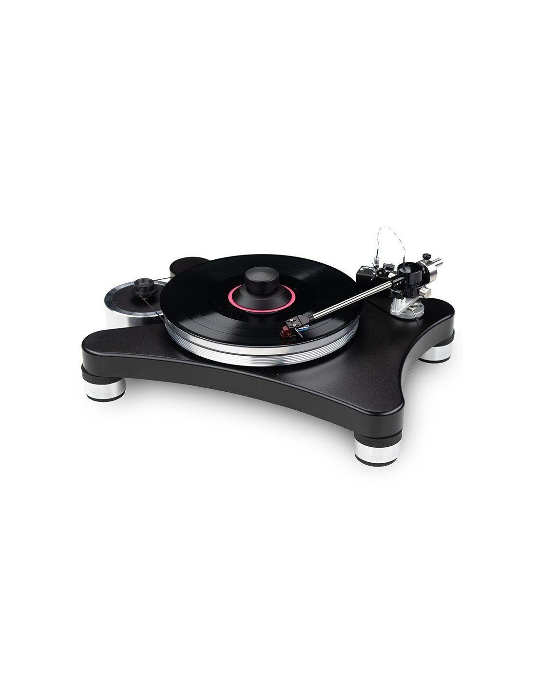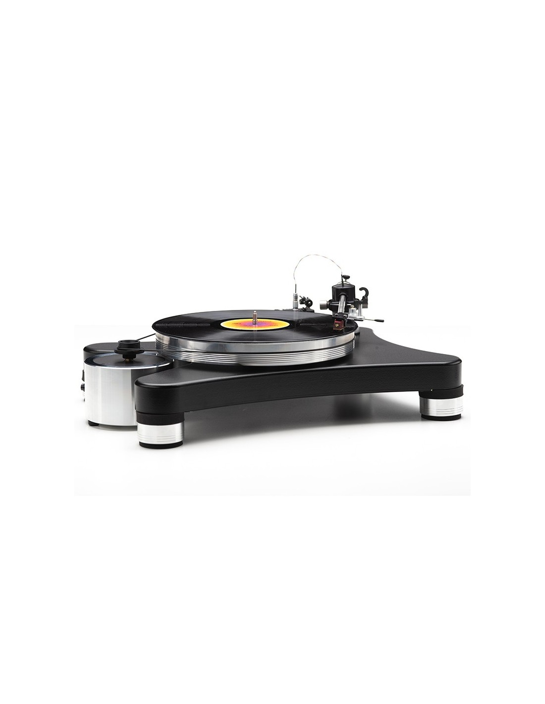Giradischi completo di braccio JMW-9 da 9" premontato. Trazione a cinghia. Unità motore separata 300rpm. Braccio unipivot. Sistema di sospensione su 4 piedini HW-40. Piatto in alluminio da 3cm di spessore su cuscinetto a bagno d'olio. Chassis in MDF e acciaio con forma sagomata Prime. Delrin Clamp a vite in dotazione. Velocità 33/45 giri. Dimensioni (LxPxA): 48x38x21cm.