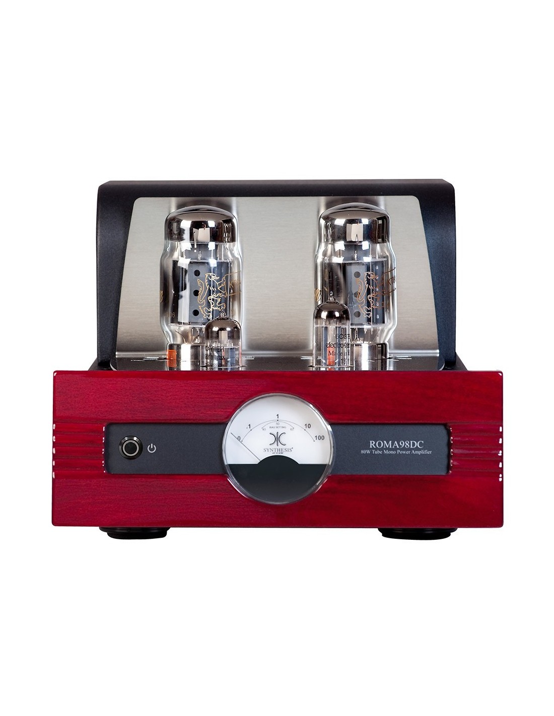 Amplificatore finale di potenza monofonico valvolare allo stato dell'arte, progettato e costruito artigianalmente a mano in Italia - stadio di potenza da 80 Watt RMS su 6 Ohm in configurazione Push-Pull ultra lineare con valvole KT88 selezionate - trasformatore d'uscita proprietario realizzato a mano nel laboratorio Synthesis, caratterizzato da una risposta in frequenza estremamente estesa e da un bassissimo tasso di distorsione anche ai livelli di potenza più elevati - VU-Meter analogico con oscillazione dell'ago lungo l'intera gamma di potenza dell'amplificatore e con indicatore di regolazione del bias - valvole impiegate: stadio d'ingresso 1x 12AY7, driver 1x 6CG7, potenza 2x KT88 - ingressi: 1x bilanciato XLR, 1x sbilanciato RCA diretto, 1x sbilanciato RCA filtrato (-3 dB) - doppi terminali d'uscita per diffusori - chassis in metallo con pannello frontale in finitura Transparent Red Lacquer Wood (legno rosso laccato trasparente) - dimensioni (L x A x P) 260 x 210 x 410 mm - peso 16 Kg