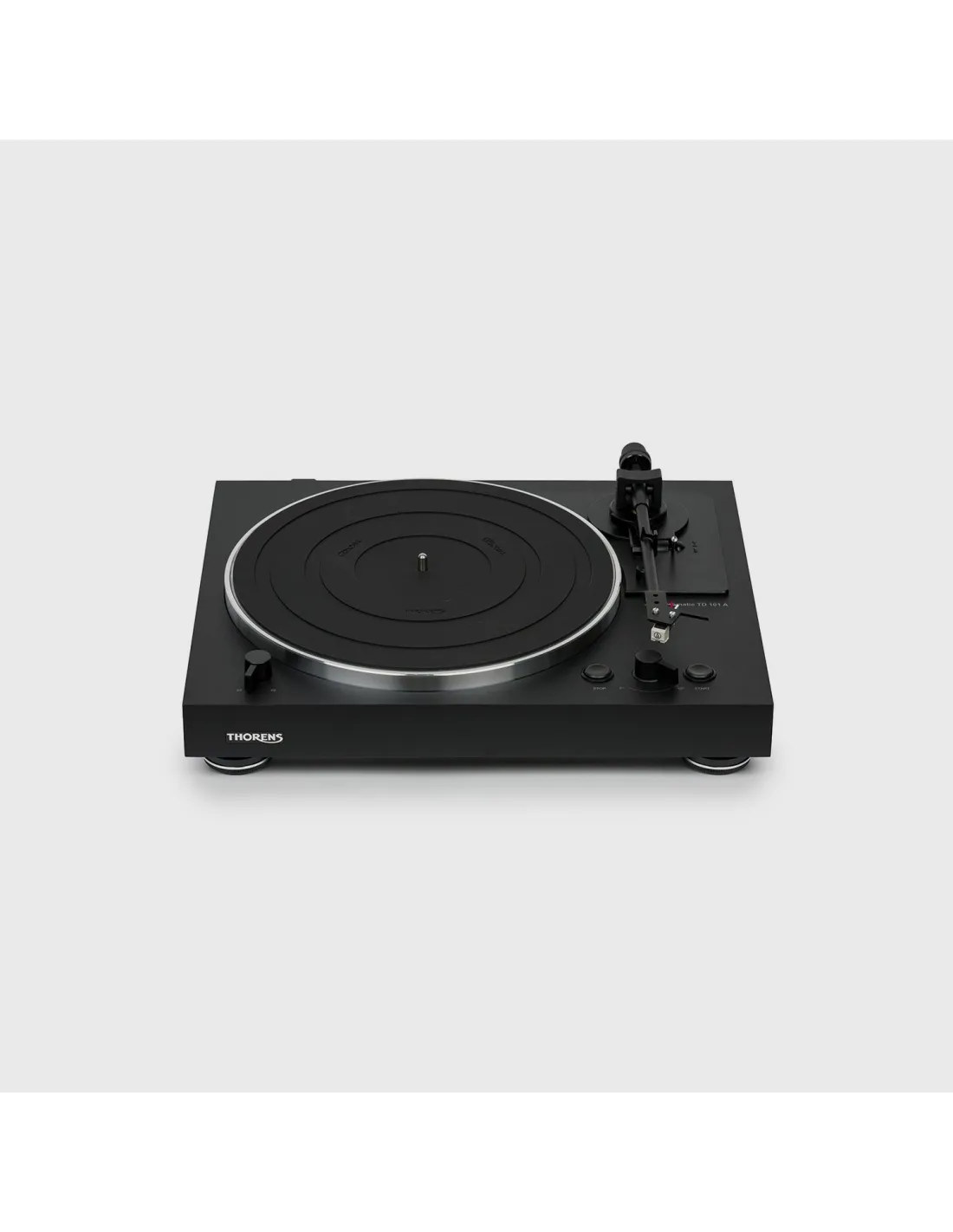 Il Thorens TD 101 A è un giradischi automatico a trazione a cinghia pensato per offrire la qualità sonora Thorens con la massima semplicità d’uso. Dotato di preamplificatore phono MM integrato disattivabile, braccio TP 19-1 e testina Audio-Technica di serie, è ideale per chi vuole entrare nel mondo del vinile senza rinunciare a precisione e musicalità.