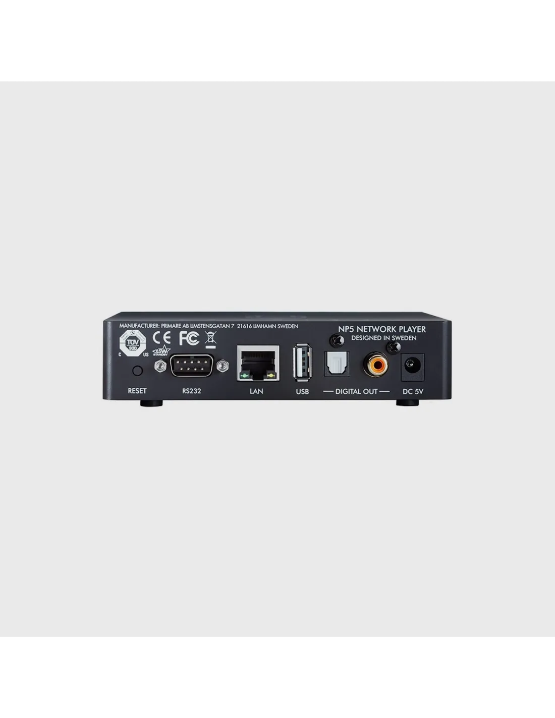 Il Primare NP5 Prisma MkII è un network streamer compatto che trasforma qualsiasi sistema con ingresso digitale in un centro di streaming hi-fi avanzato. Supporta AirPlay 2, Bluetooth, Chromecast built-in, Roon Ready, Spotify Connect, MQA passthrough e DSD/PCM ad alta risoluzione, con controllo completo tramite app.