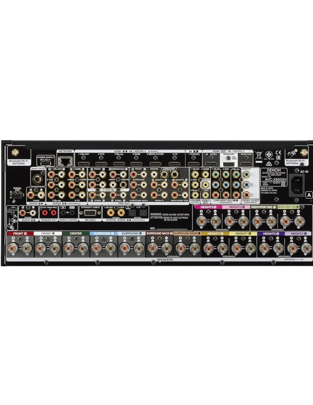 Amplificatore AV 13.2 canali, Potenza 210 W x 13 ch (6 ohms, 1%), Supporta il formato video 8k/60Hz & 4K/120Hz ottimi per il gaming e i film, 8 ingressi HDMI di cui uno 8K e 3 uscite HDMI due upscalabili 8K,eARC, WiFi, Bluetooth,HDR10, HDR10+ (nuovo 2020), HLG, Dolby Vision, Dynamic HDR (Nuovo 2020) , HDCP2.3, 2 ingressi e 1 uscita component,Dolby Atmos, Dolby Atmos Height Virtualization, DTS:X, DTS Virtual:X, DTS:X pro. Processore AL32 Multi CH Processing, WiFi 2.4 & 5.0 GHz, Bluetooth, Dolby Atmos Compatibile AURO 3D - IMAX ENHANCED - DTS Neural:X 11.1, Covertitore DAC high performance AK4490EQ, HEOS Multiroom e servizi online , AirPlay, Spotify Connect, Senza interruzione, HD-Audio, DSD fino a 5.6MHz, Audyssey MultEQ XT32/SubEQ/LFC , Audyssey App support, Interfacccia grafica avanzata, Seconda Zona Multiroom-Multisorgente (incl. sorgenti digitale), Crestron Connect, ECO Mode